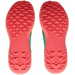 The outsole is made from abrasion resistant rubber with strategically placed different sized rubber studs to gain grip going uphill and down.