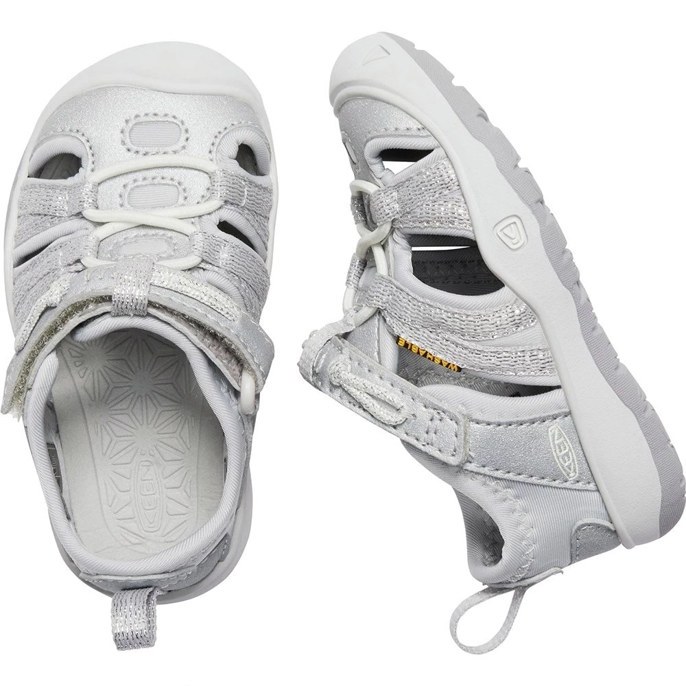 With a soft, comfortable construction, cushioned footbed and covered toe, the girl on the go doesnt have to worry about watching her step.